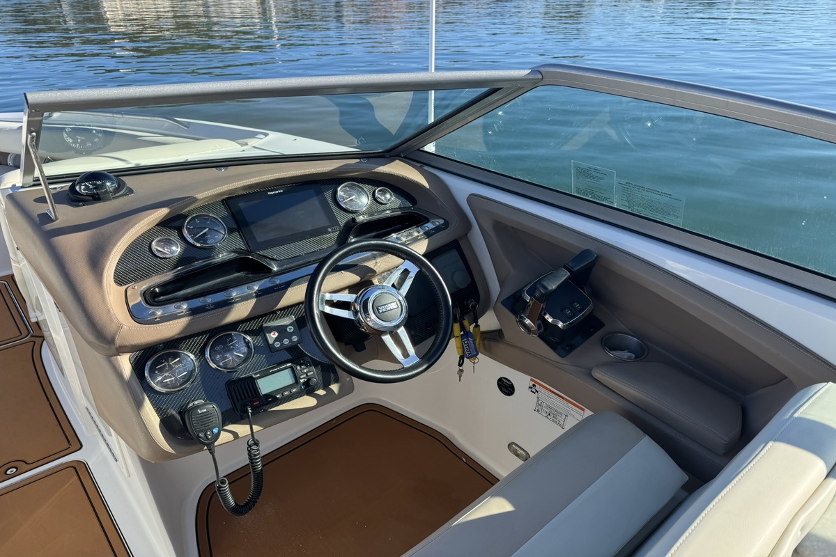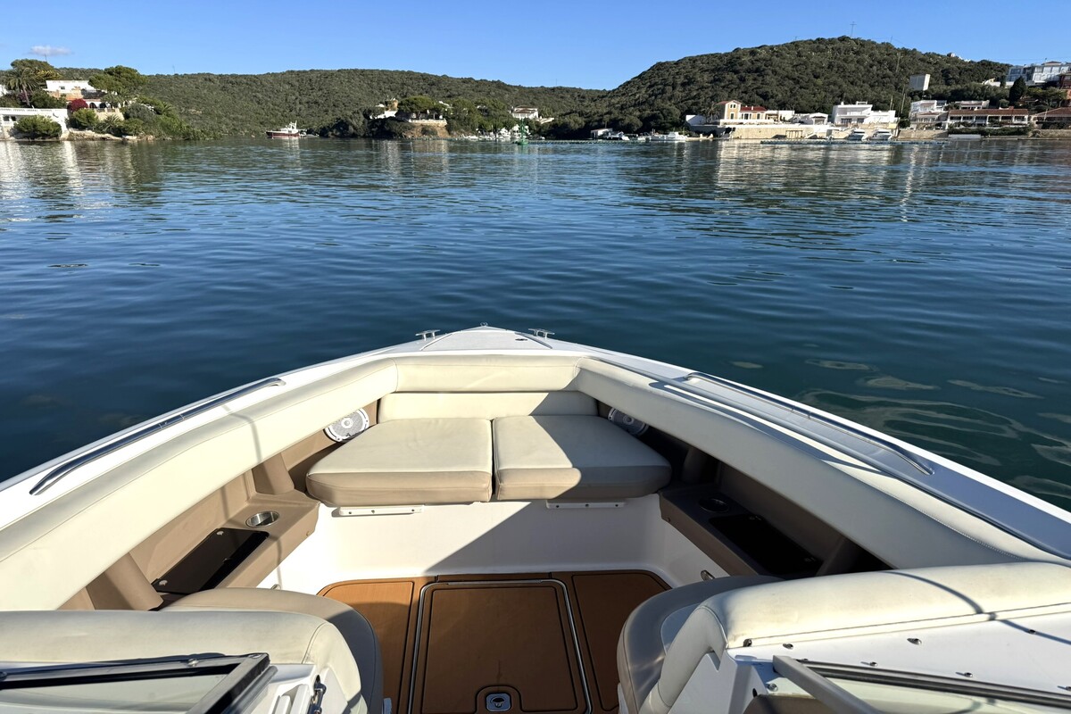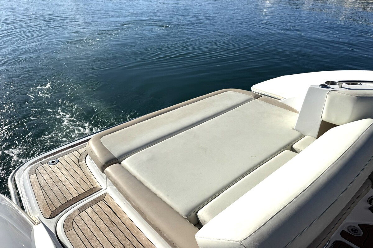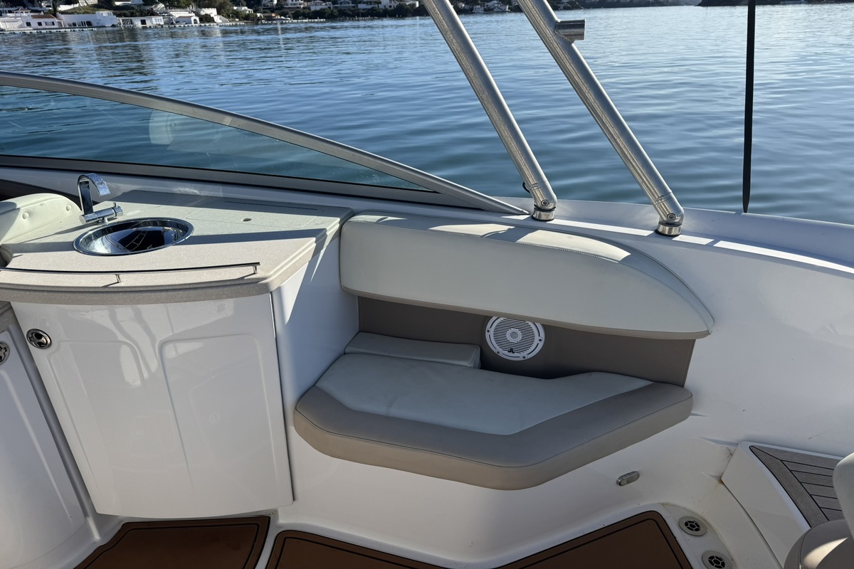 El Cobalt 302 demostrará de inmediato todas las razones por las que la insistencia de Cobalt en que las pequeñas cosas se hagan especialmente bien se acumula en una experiencia de navegación inolvidable. Toques pequeños como altavoces moldeados en la cabina en ángulos precisos para una acústica ideal en todas partes. O los finos detalles de la artesanía en el timón, los vinilos de dos tonos cosidos a doble aguja a lo largo de la parte superior. Detalles como interruptores abovedados en el tablero, que añaden simultáneamente toques de cosmética y precisión aeronáutica. Los medidores han sido diseñados para maximizar la información, inclusiva e inmediata, y en el centro se encuentra una unidad de posicionamiento global Garmin, estándar por supuesto. El asiento del timón, con su característica función de plegado para comodidad en múltiples posiciones, ahora se replica en la popa del 302, mientras que una escalera oculta espera en la plataforma de baño.